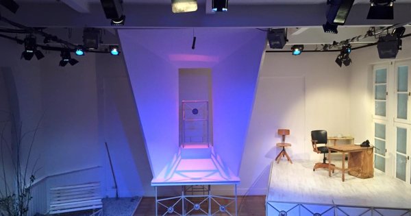 Der Saal im 1. Obergeschoss bietet Raum für bis zu 60 Zuschauer. Wenn er gerade nicht mit dem Bühnenbild einer aktuellen Produktion belegt ist, wird er auch als Probenraum genutzt.