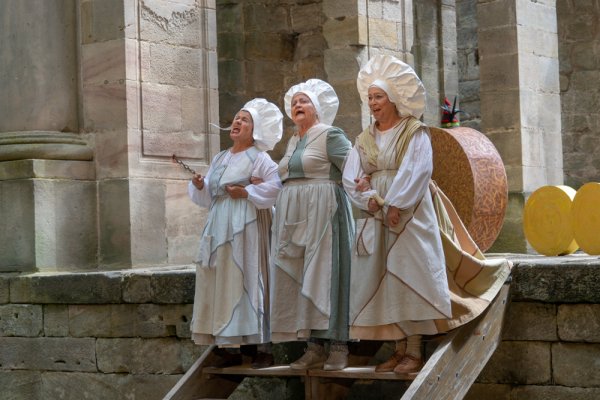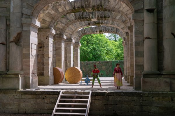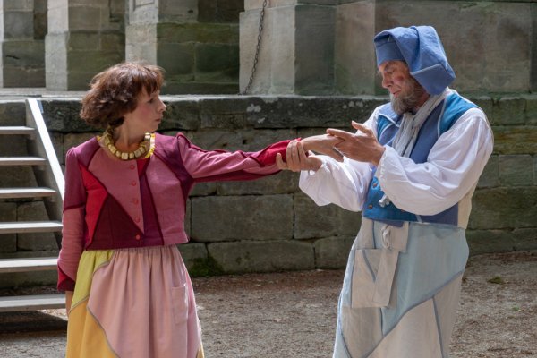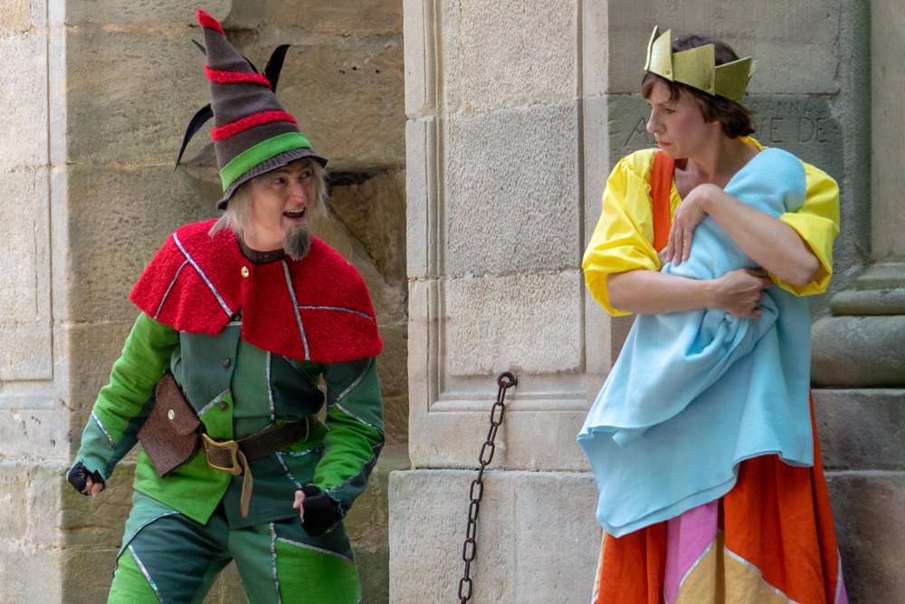 Das bekannte „Rumpelstilzchen", das unbekannte Märchen „Die drei Spinnerinnen" sowie zahlreiche Volkslieder sind in einer spannenden Spielfassung miteinander verwoben -- ideal für die märchenhafte Spielkulisse des Römischen Theaters.