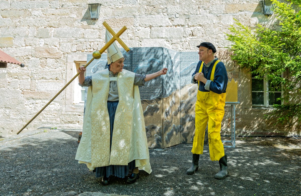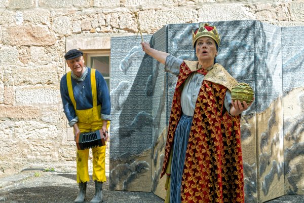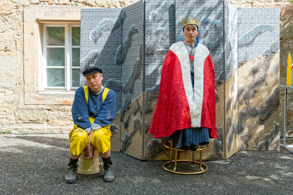 Mit einfachen Theatermitteln und viel Livemusik und Gesang bringen vier Darstellerinnen und Darsteller das berühmte Märchen vom Butt und dem Fischerpaar lebendig und kurzweilig auf die Bühne.