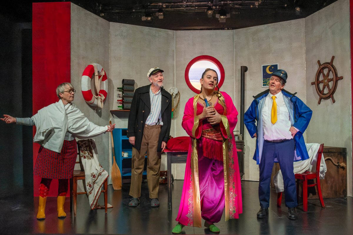 Auf seiner sturmumtosten Leuchtturminsel mitten im Meer möchte Käpt´n Boma es sich bei einer guten Tasse Tee und seinen Lieblingskeksen gemütlich machen, als auf einmal unvorhergesehener Besuch auftaucht. Seine Tante Tedd hat mal wieder seinen Geburtstag vergessen und kommt sechs Wochen zu spät, um ihm zu gratulieren. Und der Eilpostflaschenpostpostbote bringt ihm eine anonyme Flaschenpost. Aus ihr entsteigt Scheherazade, eine geheimnisvolle junge Frau. Sie kann sich nicht erinnern, wo sie herkommt und wer sie ist. Sie beschließen alle zusammen, das nachzuspielen, woran sie sich als Letztes erinnern kann. Und das Märchen aus 1001er Nacht kann beginnen!